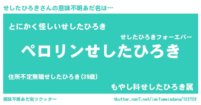 | 胡散臭い通販商品みたいなあだ名 | 『億万長者になれる霊験あらたかなお札…その名も「せしたひろき」』 |