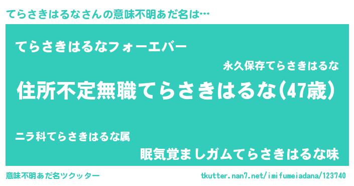 | ヒーロー風カッコイイあだ名 | 『仮面テラダー』『ネオテラサキハルナ』 |