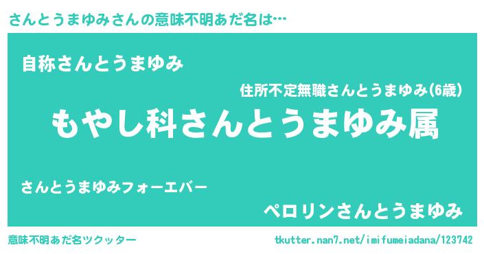 | 肩書あだ名 | 『さんとうまゆみ大佐』 |