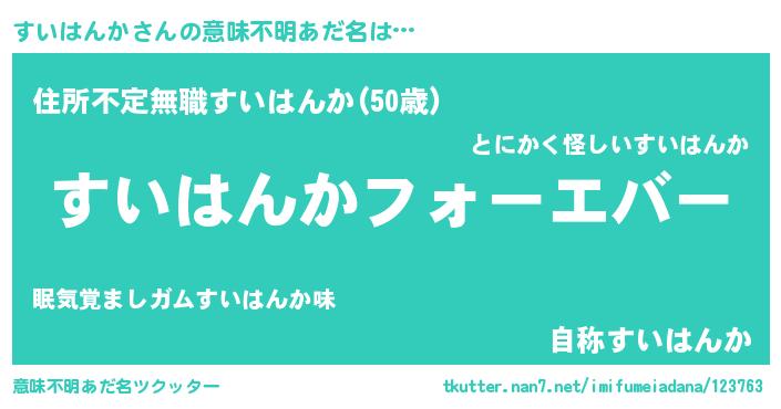 | 肩書あだ名 | 『すいはんか国家主席』『すいはんか教官』 |