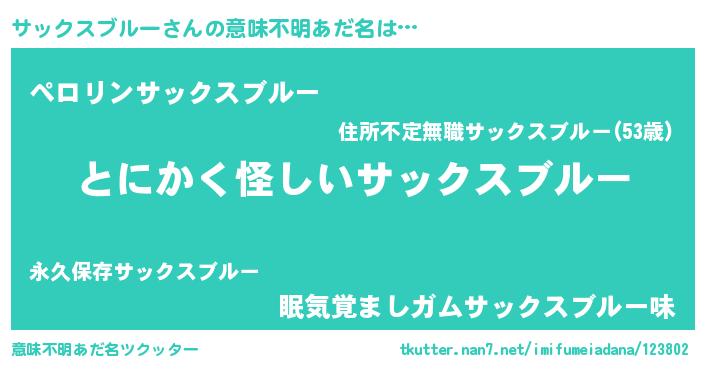 | 胡散臭い通販商品みたいなあだ名 | 『伝統あるサプリメント…その名も「サックスブルー」』 |