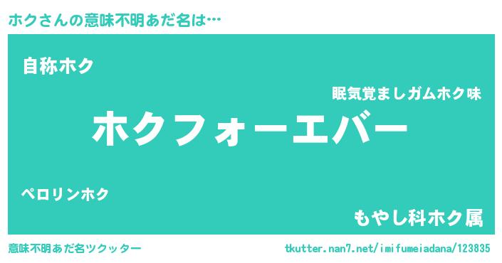 | 自動車の名前っぽいあだ名 | 『ホクア』『メルホクス・ホンツ』 |