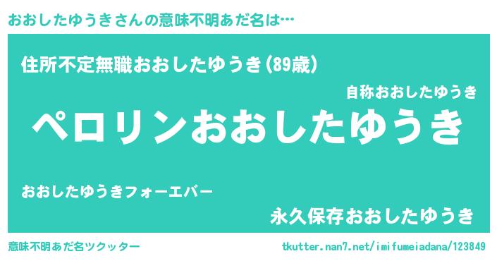 | 肩書あだ名 | 『おおしたゆうき御曹司』 |