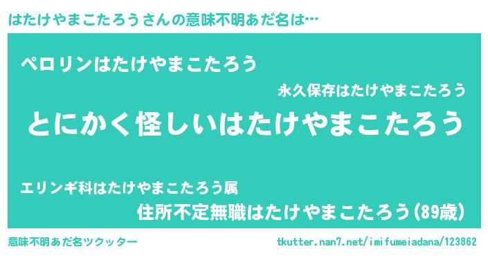 | 伝説のあだ名 | 『解き放たれた遊び人はたけやまこたろう』 |