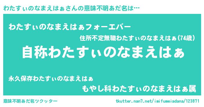 | ヒーロー風カッコイイあだ名 | 『ウルトラ戦士ワタスィノナマエハァ』 |