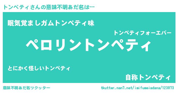 | 男性向けラノベタイトル風あだ名 | 『トンペティアートオンライン』 |