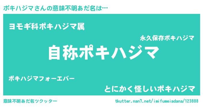 | 欧米人風あだ名 | 『ケンブリッジポキハジマ』 |