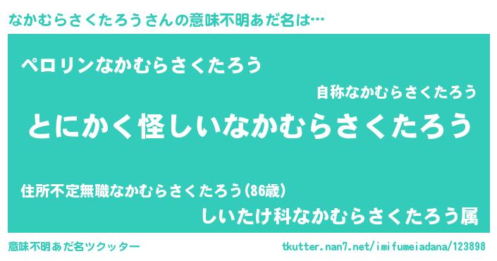 | 男性向けラノベタイトル風あだ名 | 『なかむらさくたろうの嫁は女の子じゃないと思った?』 |