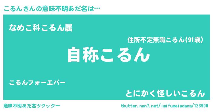 | 男性向けラノベタイトル風あだ名 | 『うちのこるんが世界を掌握している!』 |