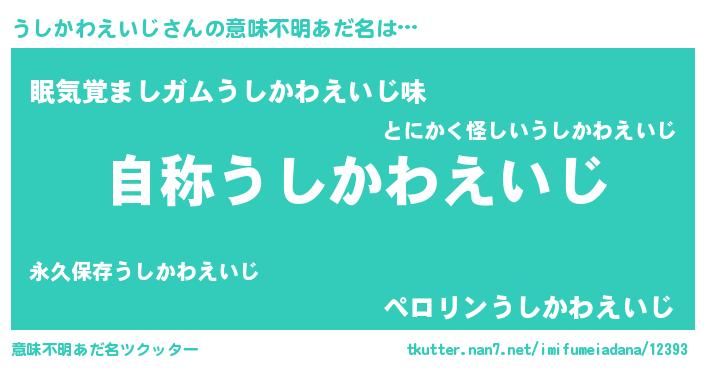 | 男性向けラノベタイトル風あだ名 | 『うちのうしかわえいじが世界を掌握している!』 |