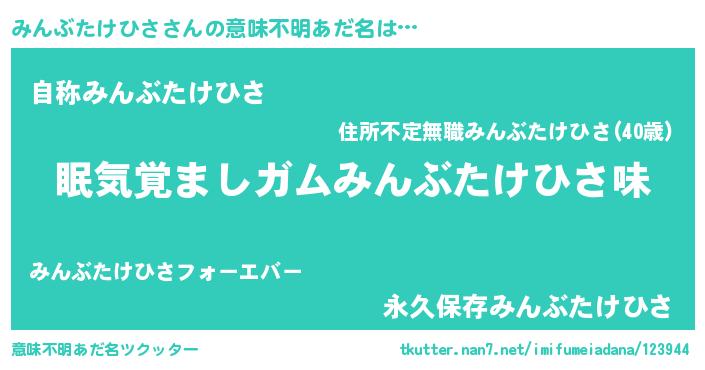 | ヘコむあだ名 | 『みんぶたけひさ(笑)』『豆乳』 |