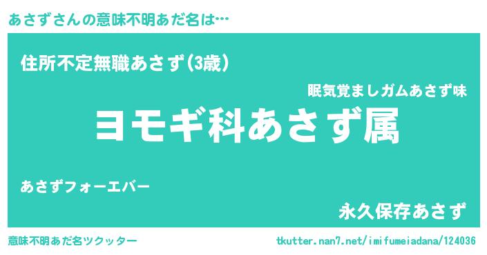 | ヘコむあだ名 | 『あさず(苦笑)』『酢こんぶ』 |