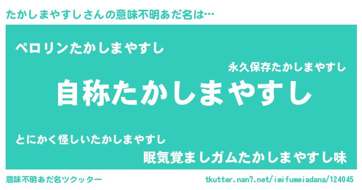 | 女子向けラノベタイトル風あだ名 | 『たかしまやすしなんてお断りですっ。』 |