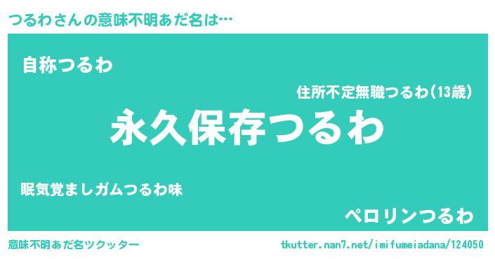 | 男性向けラノベタイトル風あだ名 | 『つるわという概念が存在しない退屈な世界 』 |