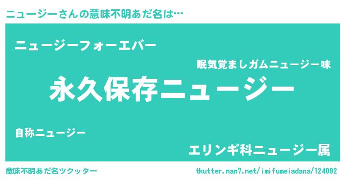 | 胡散臭い通販商品みたいなあだ名 | 『来世でも幸せになれる健康食品…その名も「ニュージー」』 |