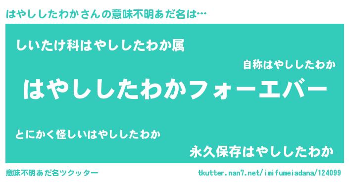 | 男性向けラノベタイトル風あだ名 | 『緋弾のハヤシシタワカ』 |