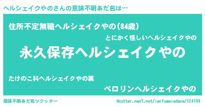 | 胡散臭い通販商品みたいなあだ名 | 『絶対に幸福をもたらす健康食品…その名も「ヘルシェイクやの」』 |