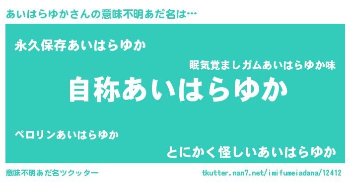 | ヘコむあだ名 | 『あいはらゆか(爆)』『あいっちょ』 |