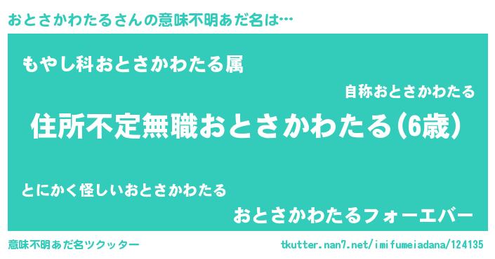 | 女子向けラノベタイトル風あだ名 | 『悪役おとさかわたるに転生したようですが、知った事ではありません』 |