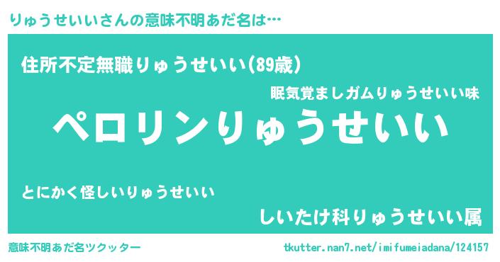 | 男性向けラノベタイトル風あだ名 | 『うちのりゅうせいいが世界を掌握している!』 |
