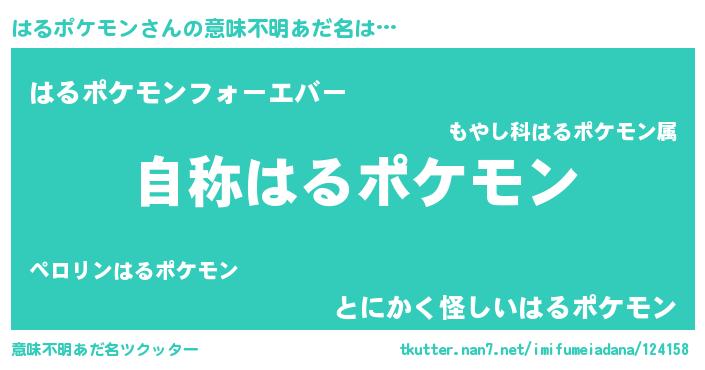 | 料理風あだ名 | 『ヘルシー!はるポケモンのピリ辛酒蒸し!』 |