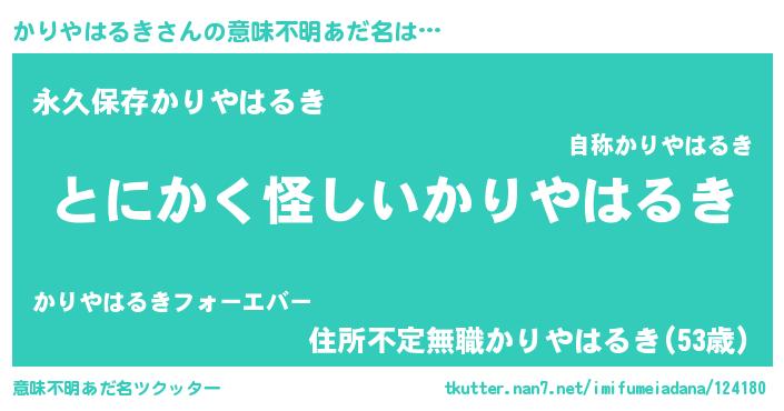 | ヒーロー風カッコイイあだ名 | 『幻影騎士カリ』『ネオカリヤハルキ』 |