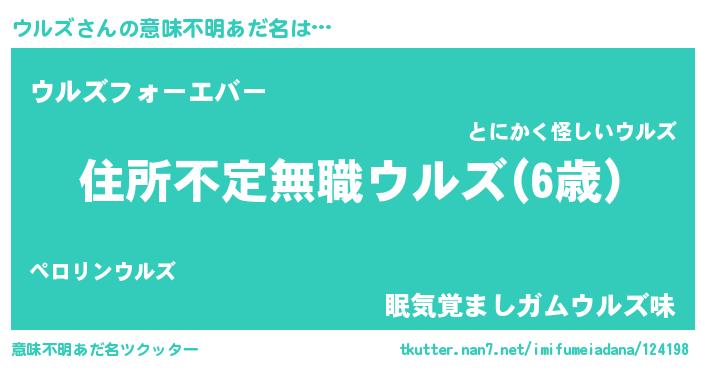 | ポケモン風あだ名 | 『ウールイ』『ウルゴンZ』『ヒウルズ』 |