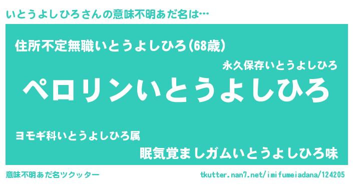 | 男性向けラノベタイトル風あだ名 | 『いとうよしひろの憂鬱』 |