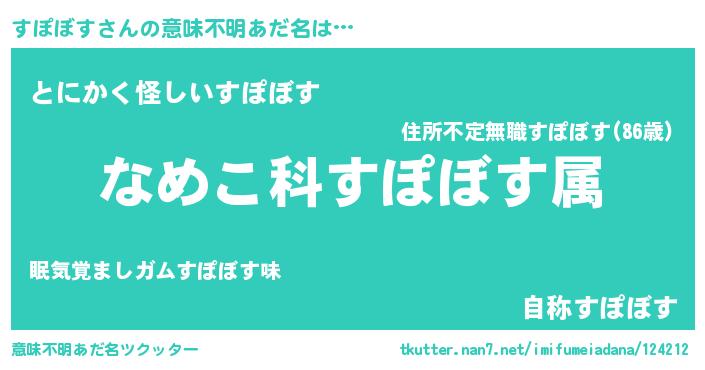 | 男性向けラノベタイトル風あだ名 | 『転生したらすぽぼすだった件』 |