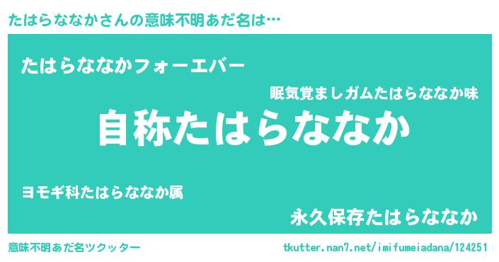 | 欧米人風あだ名 | 『ケンブリッジたはらななか』 |