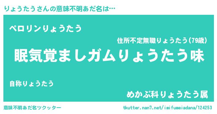 | ヘコむあだ名 | 『りょふぇ~』『なまこ酢』 |