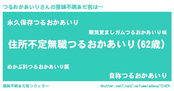 | ヘコむあだ名 | 『つるおかあいり(爆)』『つるにー』 |