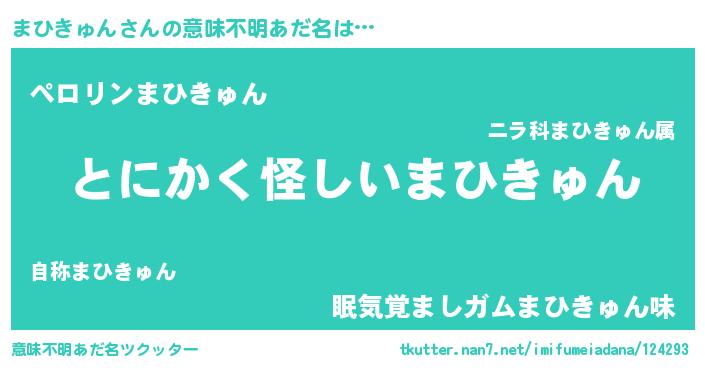 | 男性向けラノベタイトル風あだ名 | 『まひきゅんの嫁は女の子じゃないと思った?』 |