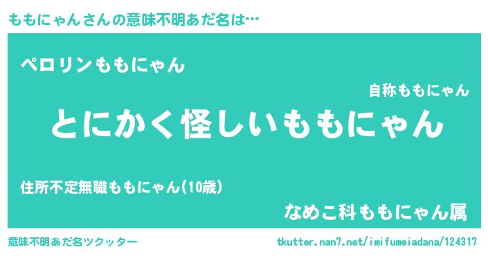 | 欧米人風あだ名 | 『ももにゃん・ステッグマイヤー』 |