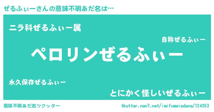 | 男性向けラノベタイトル風あだ名 | 『ぜるふぃーに滅ぼされるだけの簡単なお仕事です』 |