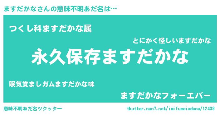 | 男性向けラノベタイトル風あだ名 | 『誰もが恐れるあのますだかなが、ぼくの専属メイドになるようです。』 |