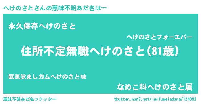 | 男性向けラノベタイトル風あだ名 | 『この素晴らしい世界にへけのさとを!』 |