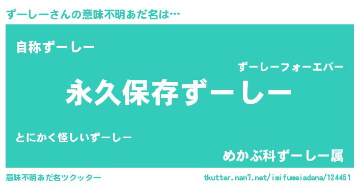 | 男性向けラノベタイトル風あだ名 | 『ずーしーという概念が存在しない退屈な世界 』 |