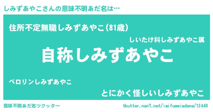 | 胡散臭い通販商品みたいなあだ名 | 『テレビで話題のアガリクス…その名も「しみずあやこ」』 |