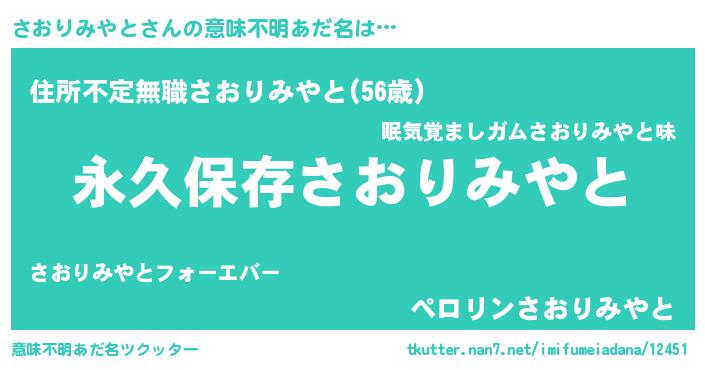 | 伝説のあだ名 | 『古より伝わる勇者さおりみやと』 |