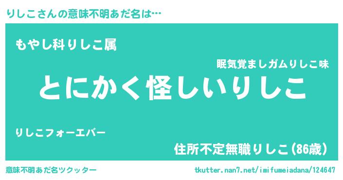 | 胡散臭い通販商品みたいなあだ名 | 『伝統あるサプリメント…その名も「りしこ」』 |