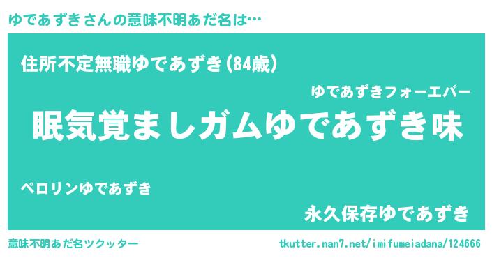 | ヒーロー風カッコイイあだ名 | 『慈愛の使者ゆであずき』『仮面ユデダー』 |