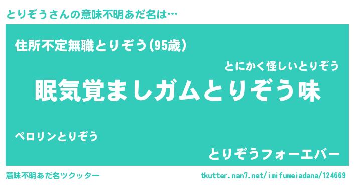 | ヒーロー風カッコイイあだ名 | 『友情の使者とりぞう』『仮面トリダー』 |