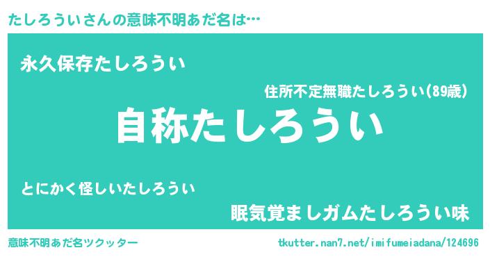 | 男性向けラノベタイトル風あだ名 | 『Re:たしろういから始める異世界生活』 |