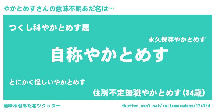 | ヘコむあだ名 | 『やかとめす(遠い目)』『やかぷりん』 |