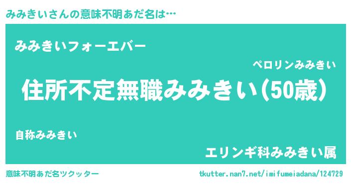 | ポケモン風あだ名 | 『ミーミイ』『ミミゴンZ』 |