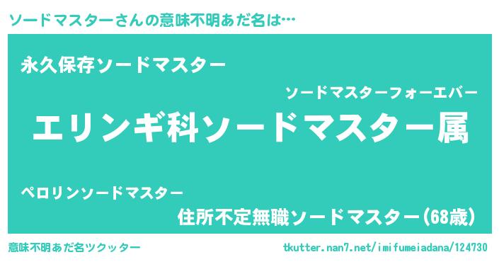 | 男性向けラノベタイトル風あだ名 | 『ソードマスタースレイヤー』 |