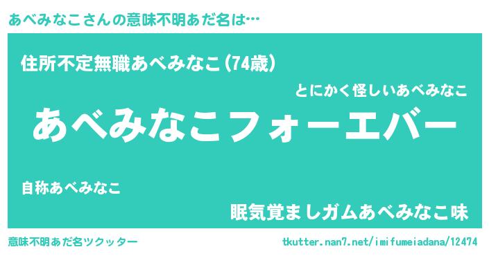 | 欧米人風あだ名 | 『あべみなこクリステル』 |