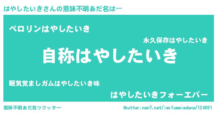 | ヒーロー風カッコイイあだ名 | 『最強戦士ハヤシタイキ』 |
