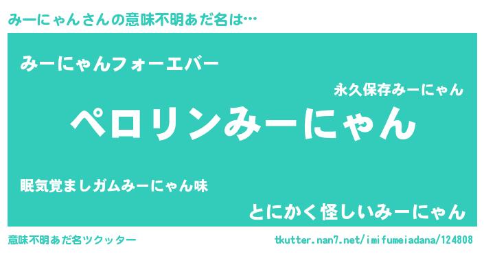 | 男性向けラノベタイトル風あだ名 | 『みーにゃんの憂鬱』 |